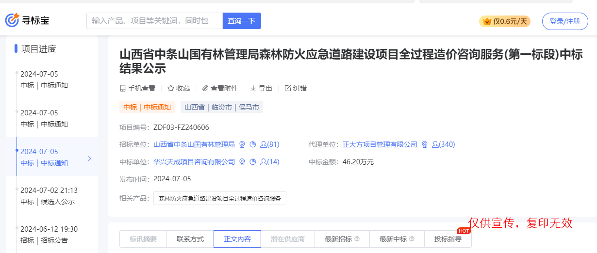 近日,我公司参与了“山西省中条山国有林管理局森林防火应急道路建设项目全过程造价咨询服务”,经评审委员会综合评审,项目业主确认,确定华兴天成项目咨询有限公司成功中标山西省中条山国有林管理局森林防火应急道路建设项目全过程造价咨询服务项目。
