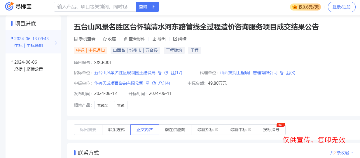 华兴天成项目咨询有限公司成功中标五台山风景名胜区台怀镇清水河东路管线全过程造价咨询服务项目。