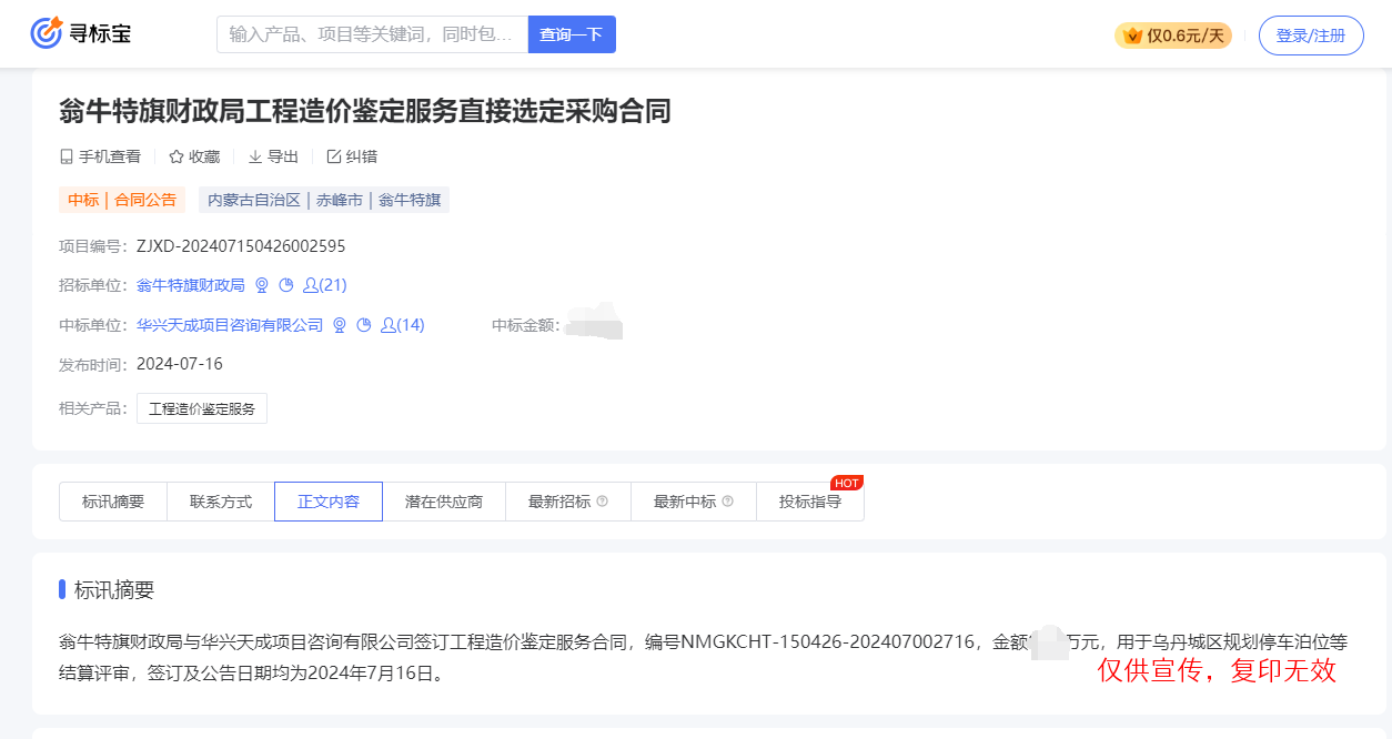 近日,我公司参与了“翁牛特旗财政局工程造价鉴定服务机构”,经评审委员会综合评审,项目业主确认,确定华兴天成项目咨询有限公司成功入选翁牛特旗财政局工程造价鉴定服务机构。
