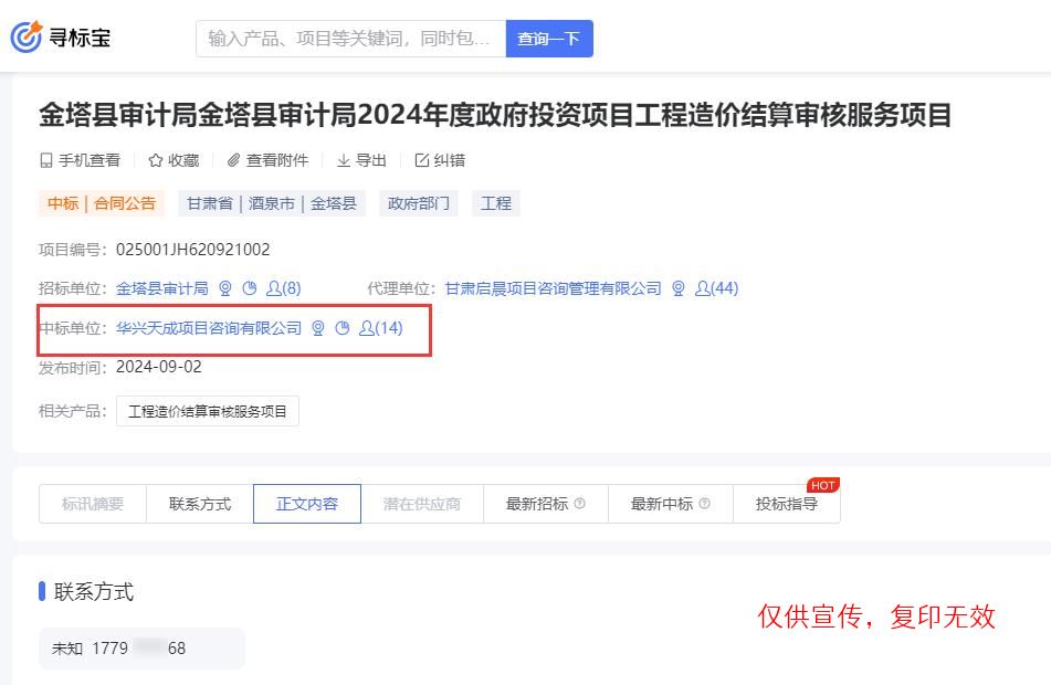 天成项目咨询有限公司成功中标金塔县审计局金塔县审计局2024年度政府投资项目工程造价结算审核服务项目。