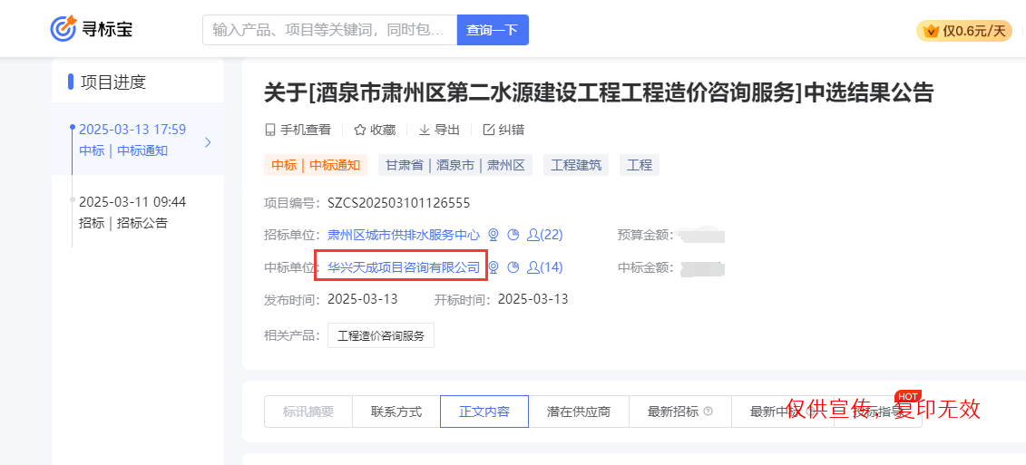 企业标讯丨造价咨询