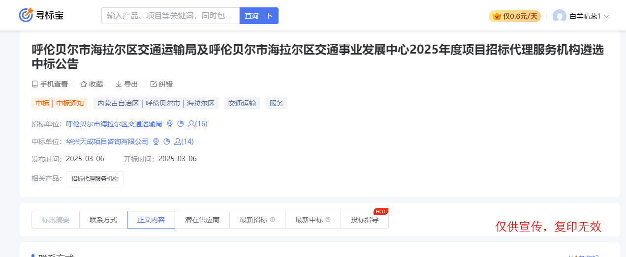 我公司参与了“呼伦贝尔市海拉尔区交通运输局及呼伦贝尔市海拉尔区交通事业发展中心2025年度项目招标代理服务项目”,经评审委员会综合评审,项目业主确认,确定