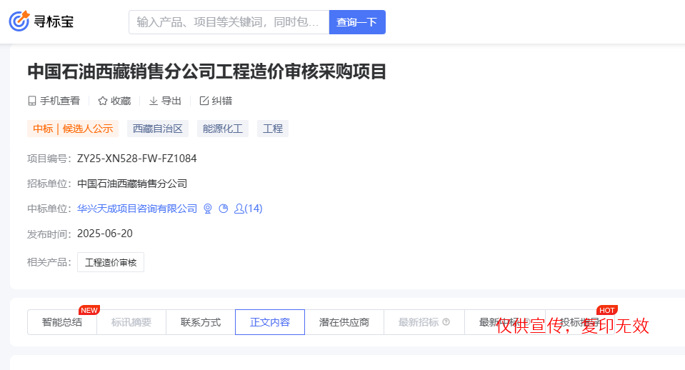 天成项目咨询有限公司成功中标中国石油西藏销售分公司工程造价审核采购项目。