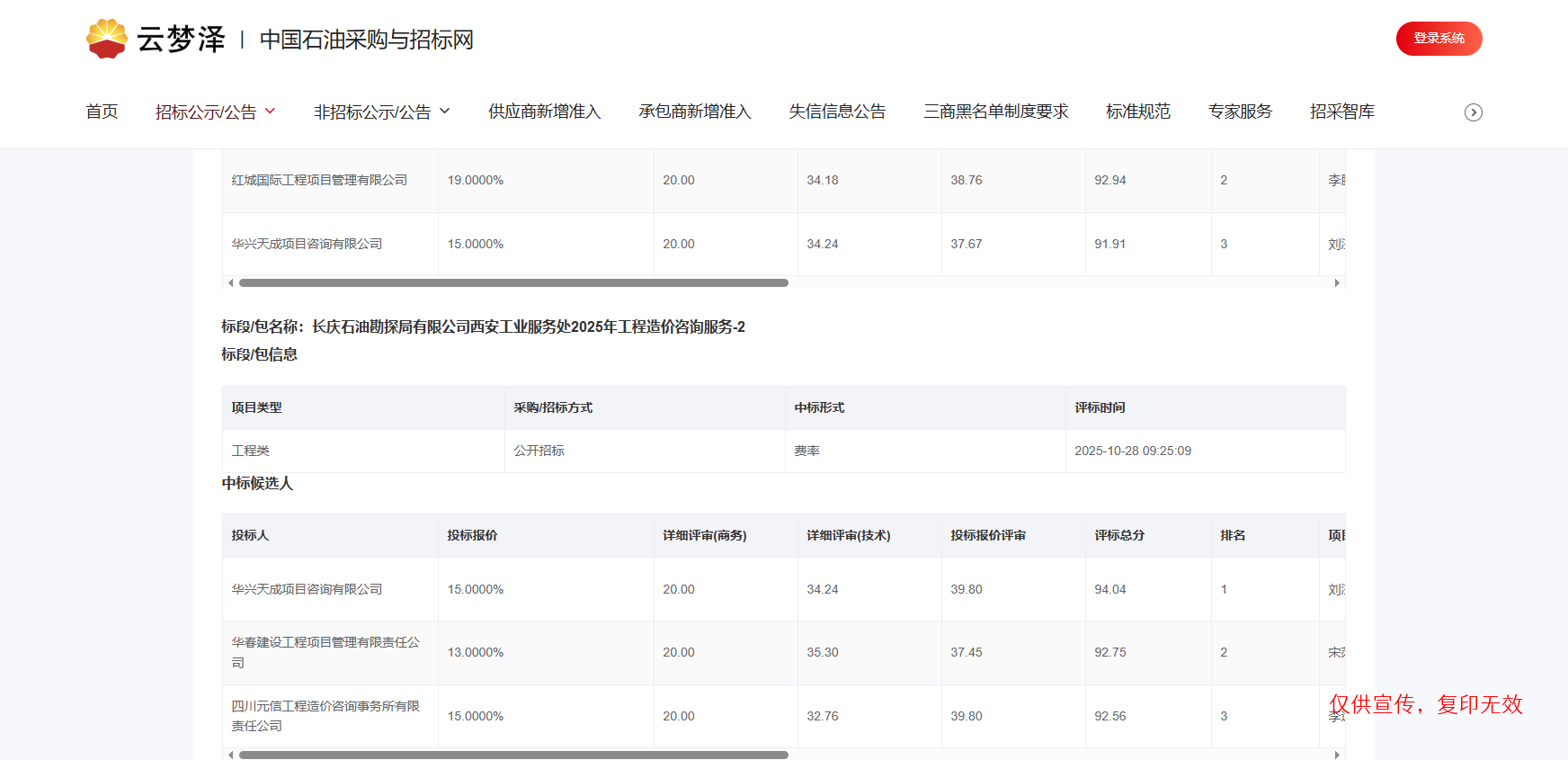 我公司参与了“长庆石油勘探局有限公司西安工业服务处2025年工程造价咨询服务”,经评审委员会综合评审,项目业主确认,确定华兴天成项目咨询有限公司成功中标长庆石油勘探局有限公司西安工业服务处2025年工程造价咨询服务。